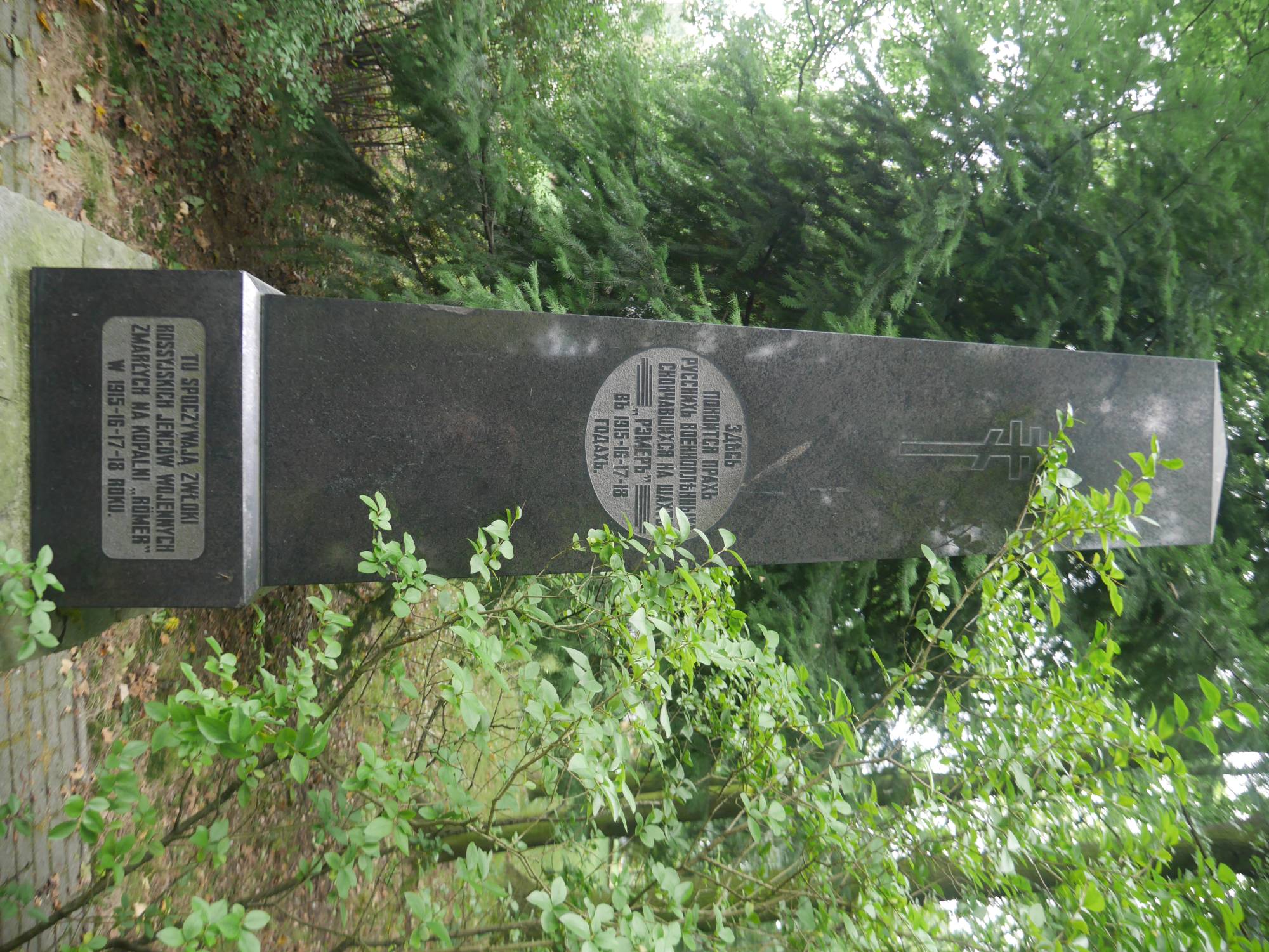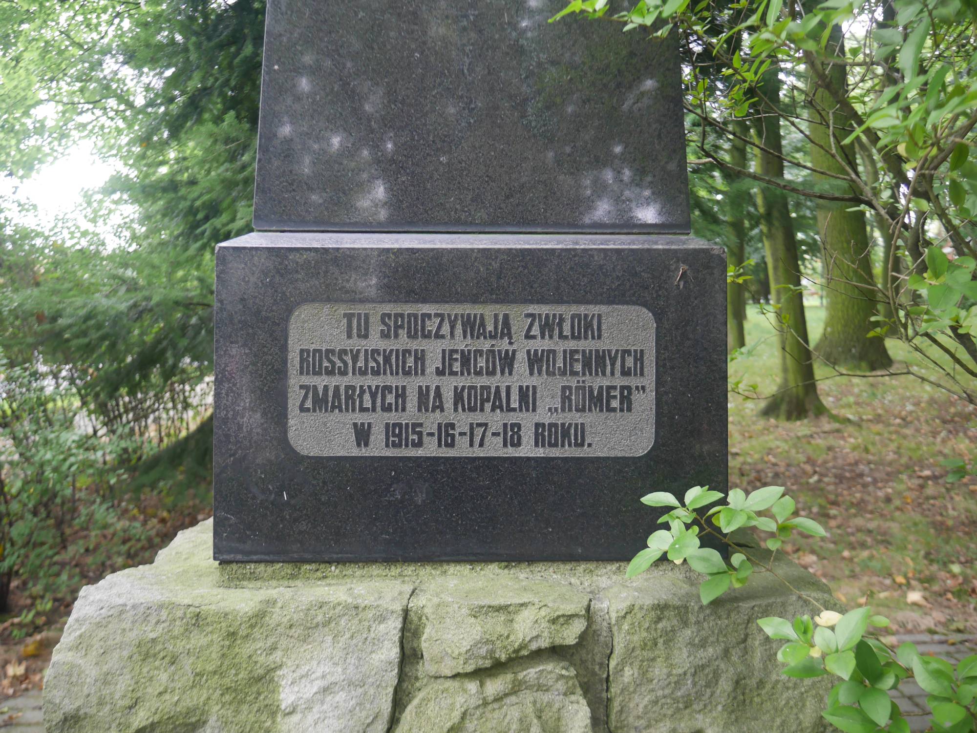 Obiekt znajduje się przy ul. Gliwickiej na terenie dawnego cmentarza parafialnego (najstarszy rybnicki cmentarz zlikwidowany około 1975 r. na polecenie władz partyjnych), dziś parku św. Jana Sarkandra, nazywanym również parkiem „Na wzgórzu” lub „Na górce”. Upamiętnia rosyjskich jeńców z okresu I wojny światowej, którzy w latach 1915–1918 byli wykorzystywani do pracy w kopalni węgla kamiennego „Rymer”, znajdującej się w Niedobczycach (dzielnica Rybnika), działającej w latach 1841–1999. Na obelisku widnieją napisy w języku rosyjskim i niemieckim, a jego autor i dokładna data powstania pozostają nieznane. Pomnik, zachowany w dość dobrym stanie mimo widocznych uszkodzeń podstawy, stanowi ważne świadectwo historii regionu i pamięci o ofiarach Wielkiej Wojny. Położony w centrum miasta, stanowi jeden z mniej znanych, lecz istotnych punktów krajoznawczych Rybnika.