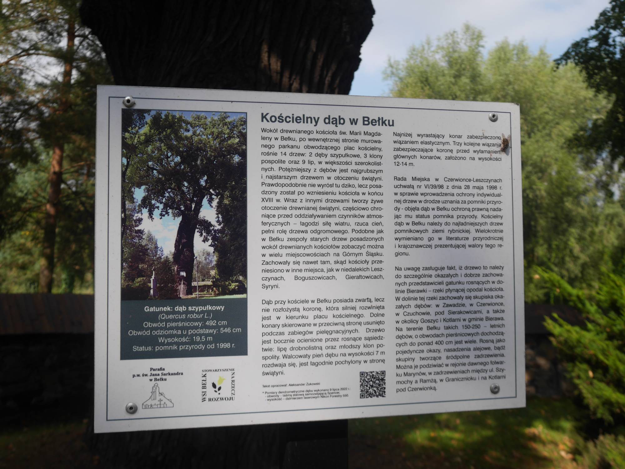 W pobliżu rosną także inne okazałe drzewa o obwodach około 300 cm, tworzące wyjątkowy krajobraz przykościelny. Dąb kościelny w Bełku jest nie tylko imponującym drzewem pod względem rozmiarów, lecz także ważnym świadkiem lokalnej historii, przyciągającym uwagę miłośników przyrody, fotografów i turystów odwiedzających zabytkowy kościół i jego otoczenie.