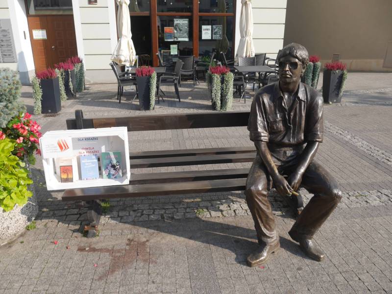 Na mikołowskim rynku znajduje się rzeźba upamiętniająca jednego z najważniejszych polskich poetów współczesnych.