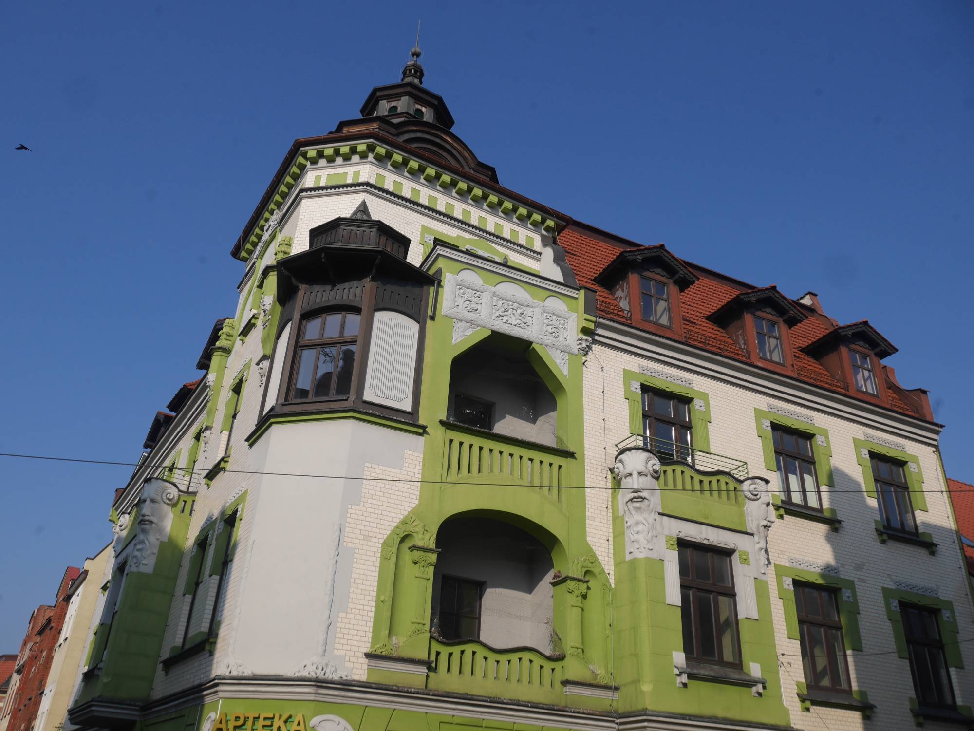 Mikołów to miejsce, które zachwyci entuzjastów architektury – podczas spaceru po jego ulicach, położonych zaledwie kilkanaście kilometrów od Katowic, można podziwiać piękne kamienice i bogactwo secesyjnych detali. Kamienica położona na roku ul. Jana Pawła II i ul. Stefana Okrzei w Mikołowie to jeden z najcenniejszych przykładów miejskiej architektury przełomu wieków XIX i XX. Wzniesiona około 1910 r., stanowi reprezentatywny przykład secesji, łącząc funkcję mieszkalną z handlową. Budynek usytuowany jest w centrum miasta, w bezpośrednim sąsiedztwie mikołowskiego rynku. Elewacja z jasnej cegły ozdobiona jest bogatą ornamentyką roślinną, wykuszami z balkonami oraz rzeźbionymi głowami satyrów (ludzie z koźlimi nogami i uszami). Charakterystyczny narożnik budynku wieńczy kopułowa wieżyczka. Całość wyróżnia się elegancją i umiarkowaną dekoracyjnością, typową dla śląskiej odmiany secesji. Kamienica została wpisana do rejestru zabytków i pozostaje ważnym elementem historycznej zabudowy miasta. Pomimo remontów zachowała oryginalny charakter i stanowi istotny punkt na szlaku zabytków Mikołowa.