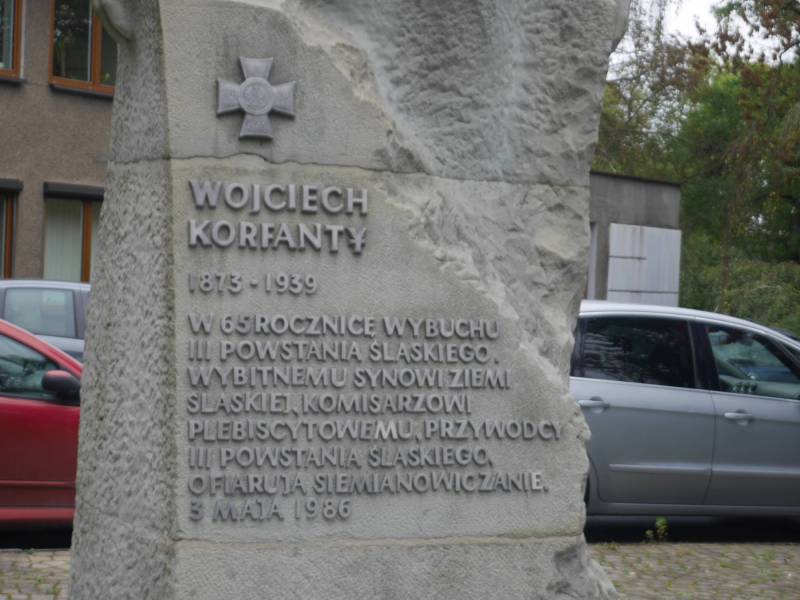 WYBITNEMU SYNOWI ZIEMI ŚLĄSKIEJ, KOMISARZOWI PLEBISCYTOWEMU, PRZYWÓDCY III POWSTANIA ŚLĄSKIEGO OFIARUJĄ SIEMIANOWICZANIE.