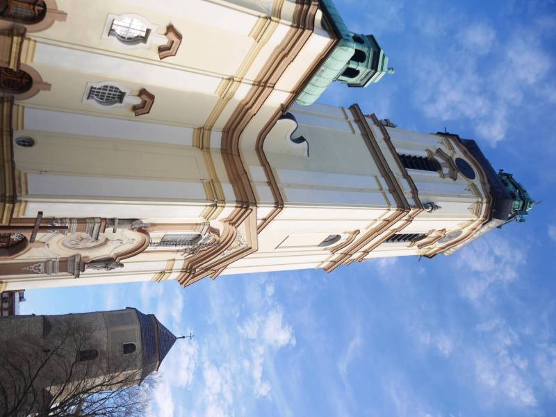 Na początku XX w. w miejscu wcześniejszego, barokowego kościoła pw. św. Wawrzyńca powstała nowa świątynia, dostosowana do potrzeb rosnącej parafii. Historia pierwszego kościoła w Strzelcach sięga aż XIII w. Świątynia początkowo podlegała archiprezbiterowi w Opolu i mieściła się w obrębie murów miejskich. Na początku XX w. ówczesny proboszcz Maksymilian Ganczarski doprowadził do budowy nowego, neobarokowego kościoła. Budowa rozpoczęła się w 1904 r., a świątynia została poświęcona w 1907 r. Nowa bryła zastąpiła skromną, dawną świątynię, z której zachowała się stojąca nieopodal wieża. W kościele zachowano część wyposażenia ze starej świątyni, w tym barokowy ołtarz główny stworzony przez Jana Krzysztofa Königera z Wrocławia, boczne ołtarze, ambonę z XVIII w. i obrazy. Ściany zdobią polichromie i dekoracje autorstwa Klinka z Babic k. Głubczyc, który dekorował również świątynię w Zubrzycach oraz wykonał dekorację jednej z kaplic kalwaryjskich na Górze św. Anny. Świątynia zachwyca harmonijnym połączeniem barokowych detali z neobarokową architekturą. Jej smukła wieża, widoczna obok ratusza i zamku, stała się symbolem miasta.