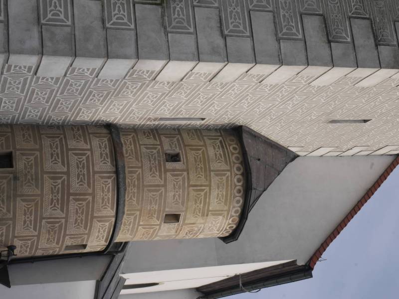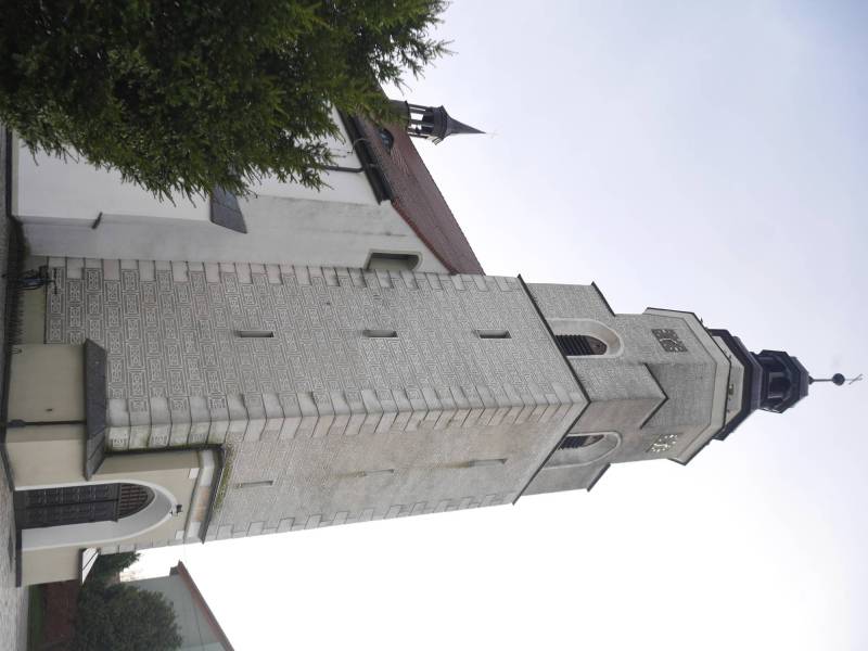 W 1614 r. dobudowano do niej wieżę z zachowaną do dzisiaj, renesansową dekoracją sgraffitową. W XVIII w. powstała północna kaplica oraz barokowy ołtarz główny, a kościół przeszedł w ręce katolików.
