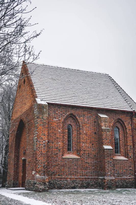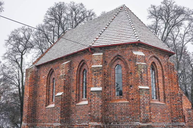 Świątynia wzniesiona jest z cegły, a cokół z kamienia polnego. Obecny kościół obejmuje zachowane, dwuprzęsłowe prezbiterium, zamknięte trójbocznie ze sklepieniem krzyżowo-żebrowym, oraz zakrystię nakrytą sklepieniem kolebkowym. Elewacje zewnętrzne zdobią ostrołukowe okna i masywne przypory, a dach wielopołaciowy pokryto dachówką. Zachowany gotycki charakter budowli podkreślają detale architektoniczne.